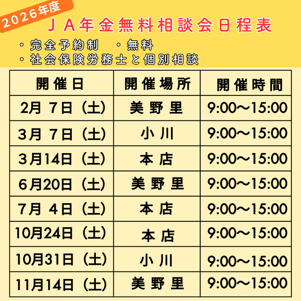 JA新ひたち野では、年金無料相談会を開催いたします。 年金に関する不安や疑問について、専門家が一人ひとり丁寧にお伺いします。
